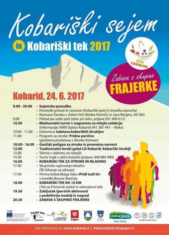 - Kobariški sejem: predstavitev lokalnih obrti in hrane ter vključevanje prebivalstva v športne dejavnosti.