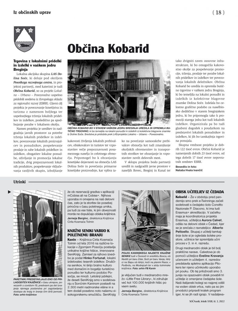 - novo trgovino lokalnih pridelkov/izdelkov, ki je svoje mesto našla v starem vaškem jedru Breginja (str. 18);