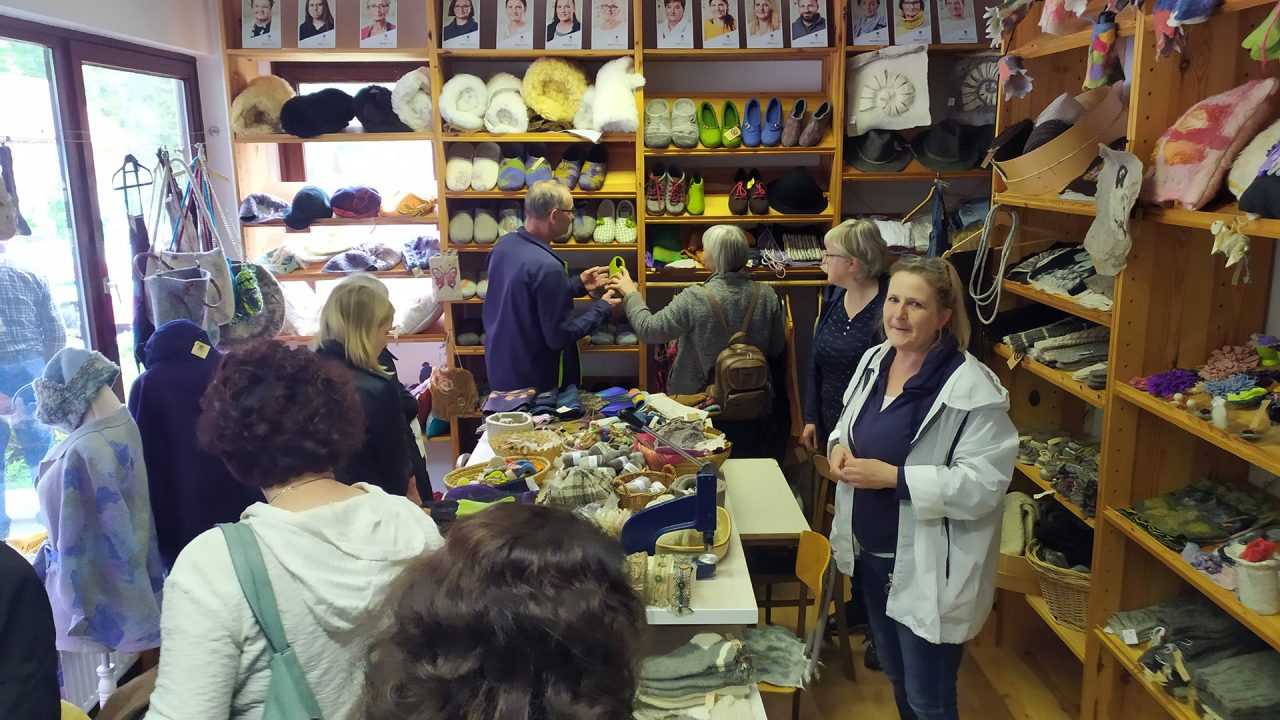 V centru Rinke smo si ogledali stalno razstavo “Solčavsko – naš dom v naročju Solčavskega”, ki ponuja vpogled v življenje in delo prebivalcev Solčavskega. Poleg tega smo obiskali butik BICKA v Solčavi, kjer smo si ogledali polsteno volno in njihove izdelke. Butik BICKA je pomemben primer, kako lahko lokalni izdelki postanejo pomemben del turistične ponudbe in prispevajo k ohranjanju tradicionalnih obrti.