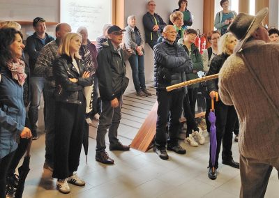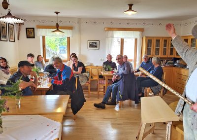 Za okusno kosilo iz jedi iz drobnice je poskrbela Turistična kmetija Loger, kjer smo uživali v lokalnih dobrotah. Ekskurzijo smo zaključili z obiskom interaktivnega muzeja flosarstva ter cvetnonedeljskih butaric na Ljubnem ob Savinji, ki je nastal s sredstvi LEADER v okviru projekta sodelovanja z naslovom Interaktivni turizem za vse. Muzej je čudovit primer ohranjanja kulturne dediščine in prikazuje pomembnost flosarstva za ta del Slovenije.