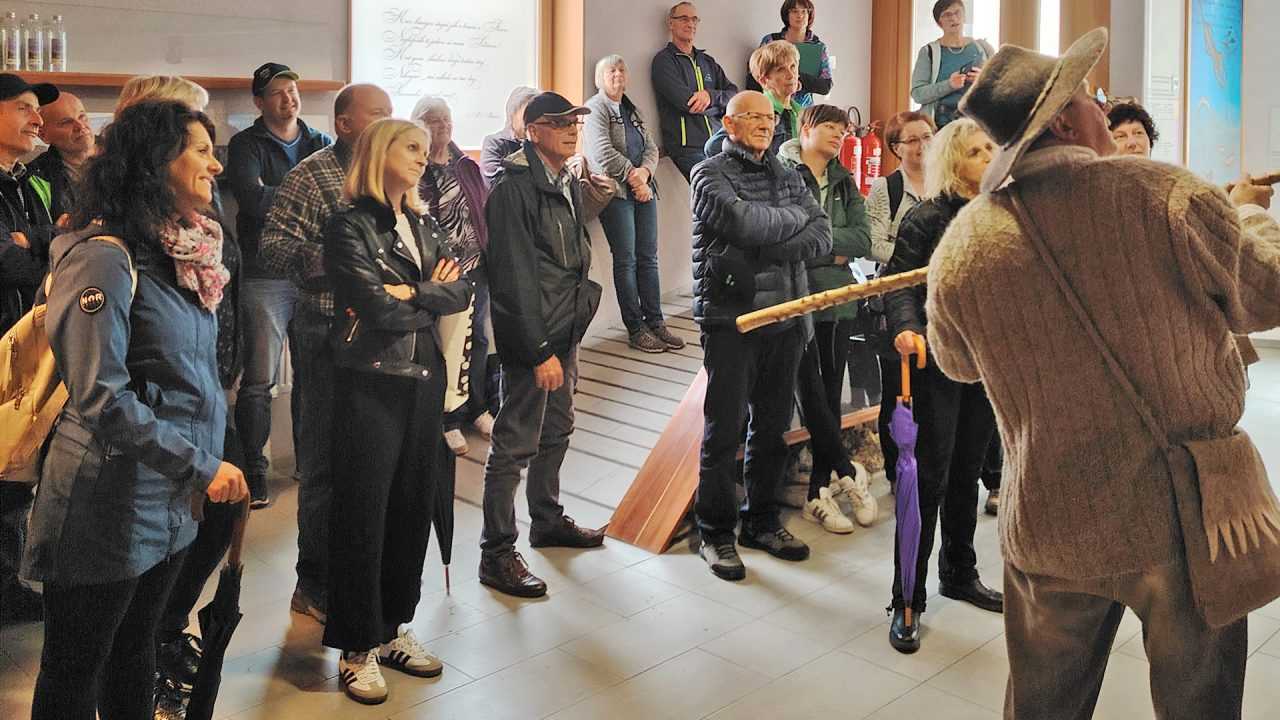 Na poti do Centra Rinke smo prisluhnili pastirčku Jerneju, ki nas je animiral z zgodbicami o Solčavskem. Jernejev pripovedovalski talent je dodal poseben čar našemu potovanju, saj smo se skozi njegove zgodbe povezali z zgodovino in tradicijo tega čudovitega kraja.